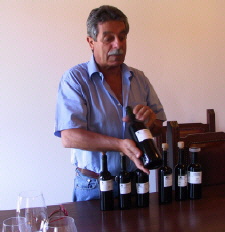 rechts Degustation mit Direktor Raffaele Cani von Mikrovinifikationen diverser Carignanoklone - und rebanlagen der Jahrgänge 1999 und 2000.