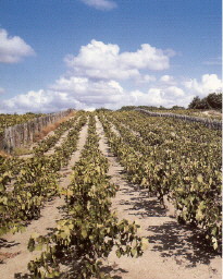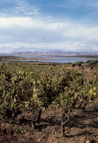 Alte Alberellowein- berge in unmittelbarer Meeresnähe bei Porto Pino